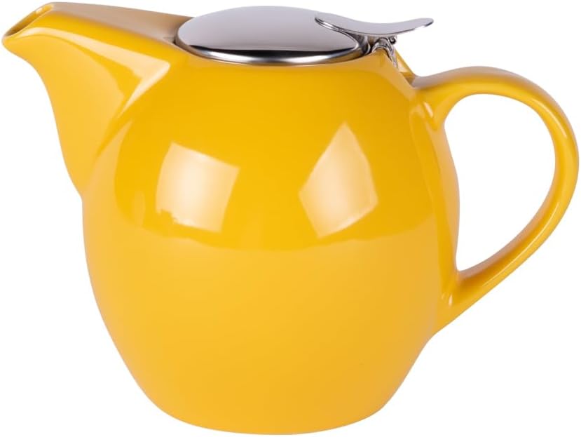 Théière boule en céramique jaune d’une capacité de 500 ml, équipée d’un filtre amovible, idéale pour l’infusion des thés en feuilles et des tisanes. Sa forme ronde favorise une circulation homogène de l’eau, permettant une extraction régulière des arômes. La céramique offre une bonne inertie thermique, aidant à maintenir la température pendant l’infusion et à préserver les saveurs. Le filtre amovible facilite le service sans résidus et simplifie l’utilisation au quotidien. Avec sa contenance de 500 ml, cette théière convient parfaitement pour deux à trois tasses, aussi bien pour un usage individuel que pour un moment partagé. Sa couleur jaune apporte une touche lumineuse et chaleureuse à la table, tandis que son design simple et fonctionnel s’intègre facilement dans tous les styles de service à thé.