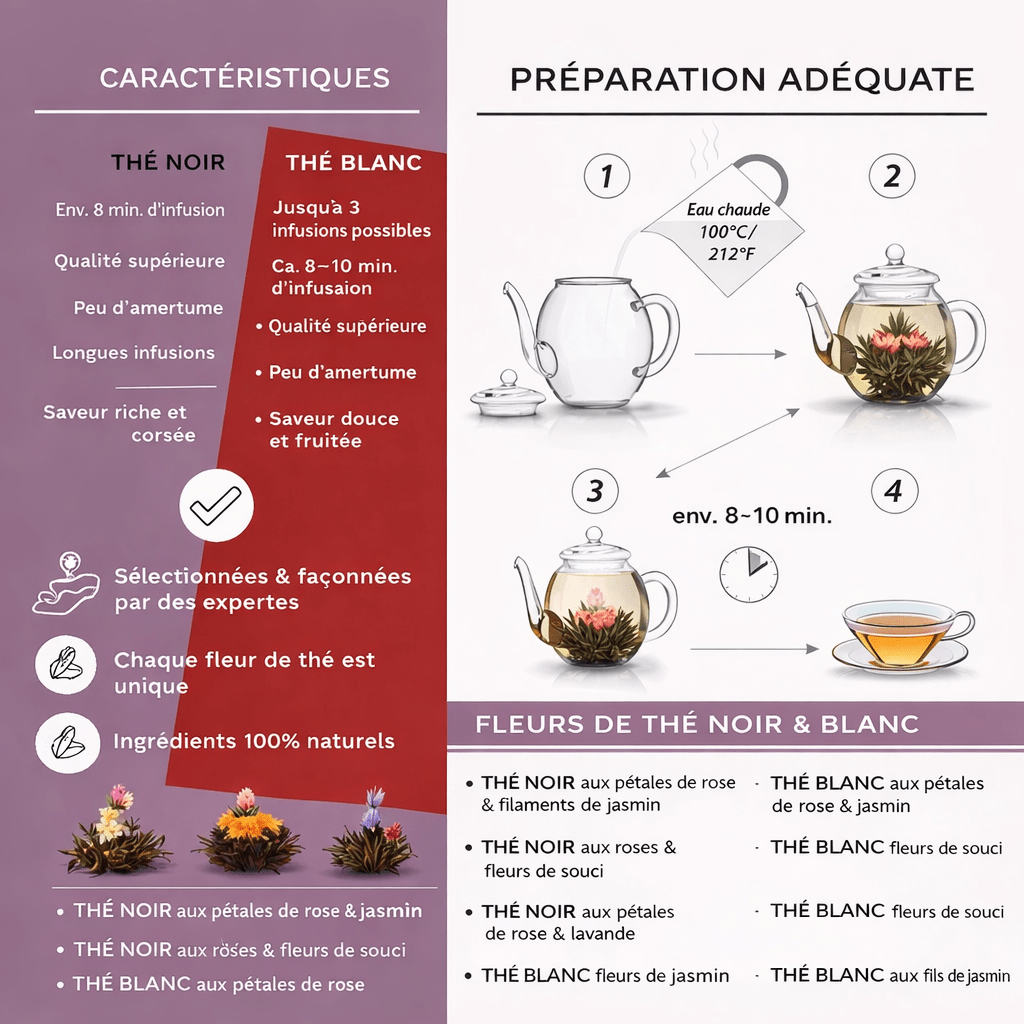 Contenu : 6 fleurs de thé blanc et noir