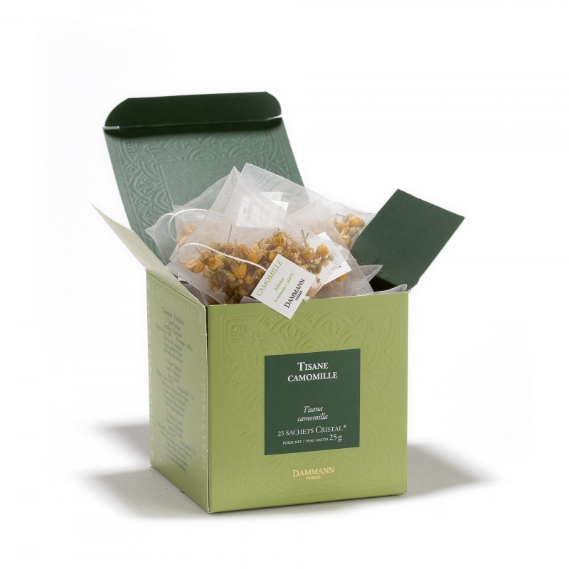 La Tisane Camomille est une infusion naturellement sans théine, élaborée exclusivement à partir de fleurs de camomille soigneusement sélectionnées. Présentée en 20 sachets Cristal, elle permet une infusion homogène et respectueuse de la plante, proche d’une préparation en vrac, tout en garantissant simplicité et propreté à l’usage. À l’infusion, la liqueur dévoile une teinte jaune lumineuse et un profil aromatique doux, floral et délicatement fruité.