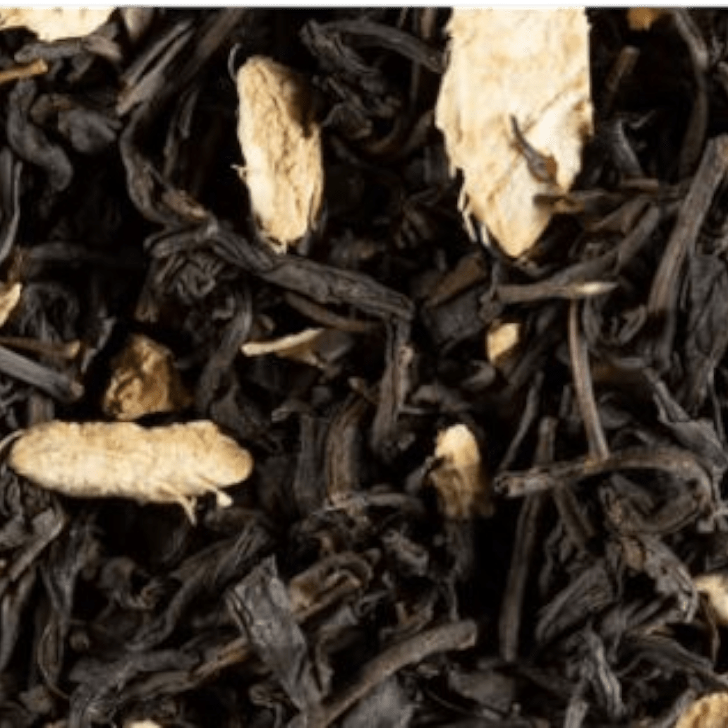 Ingrédients : thé noir (Camellia sinensis), morceaux de gingembre, arômes (amande, raisin), arôme d’orange.